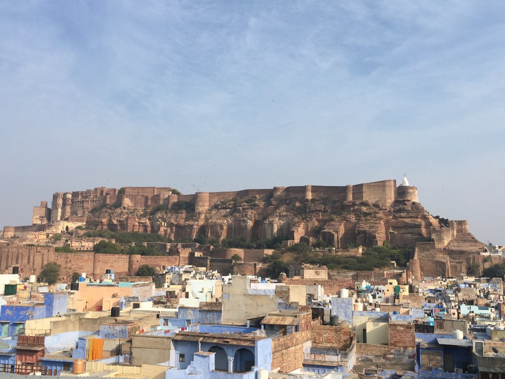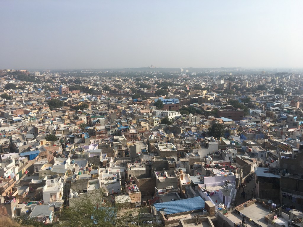 Kaleden bakıldığında masmavi duvarlarla süslenmiş şehri görebiliyorsunuz. Eski zamanlarda Brahmanlar kendilerini belli etmek için evlerini maviye boyamaya başlamış, daha sonraları ise bu giderek yaygınlaşmış.